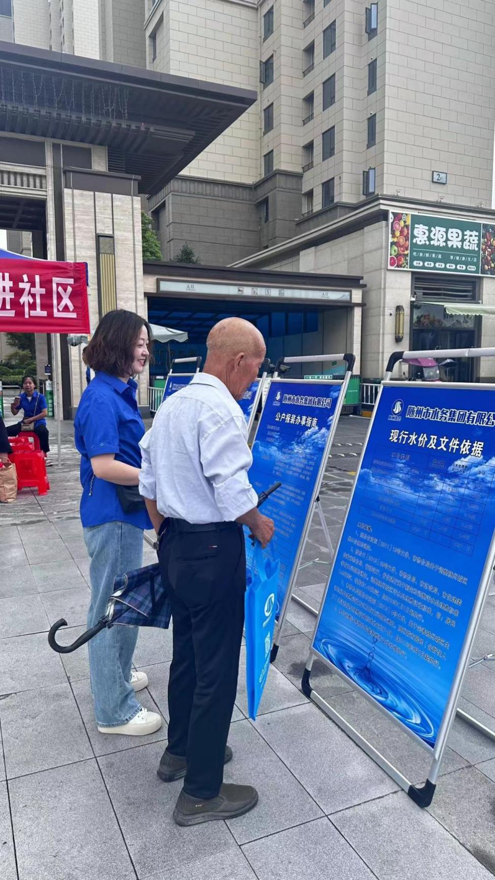 活動現場,市水務集團志愿服務隊在小區(qū)門口廣場有序搭建宣傳展架、懸掛宣傳橫幅、發(fā)放供水宣傳資料,工作人員以飽滿的熱情接待每一位前來咨詢的用戶。