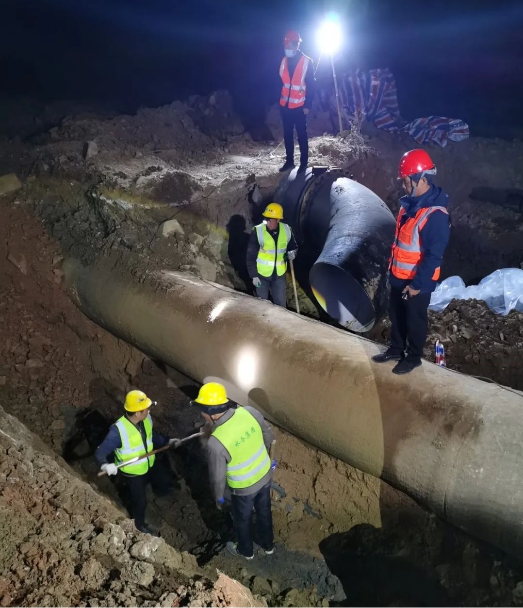 經(jīng)過24小時不間斷連續(xù)奮戰(zhàn),12月7日17時30分許,隨州城區(qū)?水河?xùn)|岸生態(tài)環(huán)境提升工程PPP項目-DN1000供水主管道遷改工程新舊管道順利連接。