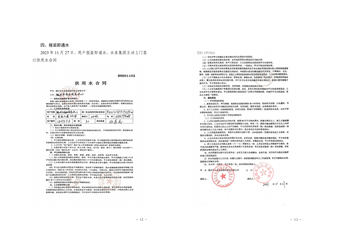 隨州市水務(wù)集團主要職責(zé)是向隨州市中心城區(qū)、曾都區(qū)、隨縣以及高新區(qū)提供供水服務(wù),集團公司下轄城市供水公司、建設(shè)工程公司、水質(zhì)檢測公司、隨縣供水公司、康潤實業(yè)公司5家全資子公司。下面展示隨州市中心城區(qū)供水接入案例示范。