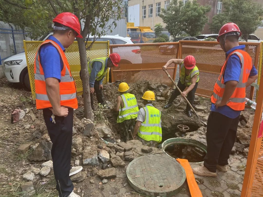 7月6日上午,客服人員接到群眾的熱線電話,清河路清河庭院附近路面大量跑水,運維中心搶修人員十五分鐘到達現(xiàn)場,通過路面積水判斷為DN400主管道爆破,測漏人員立即精準定位漏點,關閉次處的管道會直接影響周邊黃龍五隊、清河庭院、東方小區(qū)、楚苑小區(qū)、雙橋家具大市場等,導致小區(qū)和企業(yè)大面積的水壓不足甚至停水。酷暑難耐,為減少管網爆裂等突發(fā)事件給居民帶來的用水影響,維修人員在35°的高溫下連續(xù)奮戰(zhàn)8小時,當晚7點半就完成維修恢復正常供水。