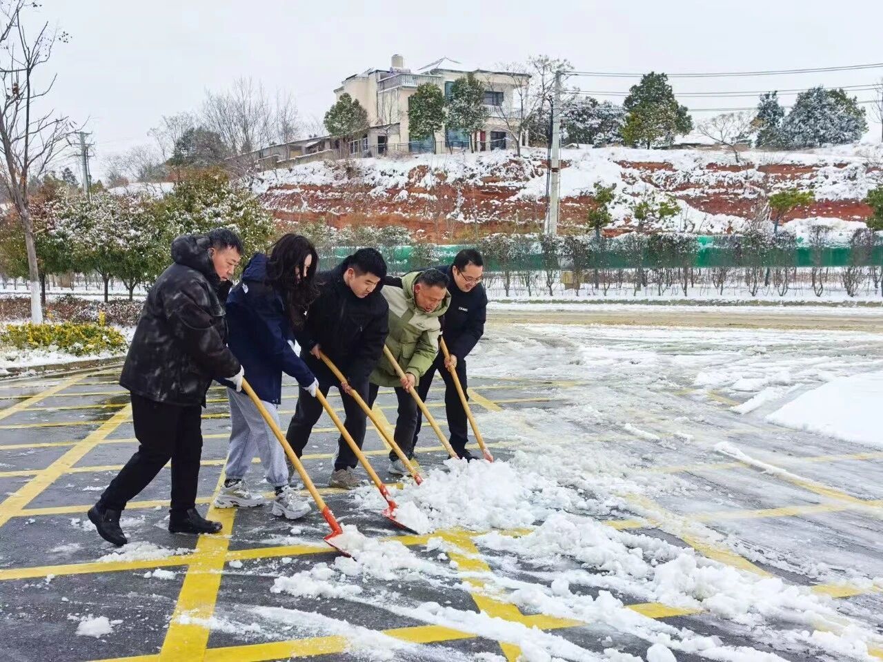 清晨的寒風(fēng)裹挾著雪粒子刮得人臉頰生疼,水務(wù)人們卻早已整裝待發(fā)。大家手持鐵鍬、掃帚,分工明確又默契十足:力氣足的揮鍬鏟雪,一鍬下去掃清一片積雪;動作麻利的推著雪鏟歸集,讓散雪快速“歸隊(duì)”;還有人主動承擔(dān)清運(yùn)工作,及時將積雪轉(zhuǎn)移至安全區(qū)域。手套被雪水浸得透濕,臉頰凍得通紅,但沒人停下腳步,爽朗的吆喝聲、工具的碰撞聲蓋過了寒風(fēng)呼嘯,現(xiàn)場熱火朝天。經(jīng)過近兩個小時奮戰(zhàn),原本被積雪覆蓋的道路,被清理出一條干凈通暢的安全通道,徹底打通了職工上下班的“安心路”。